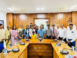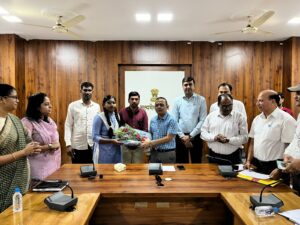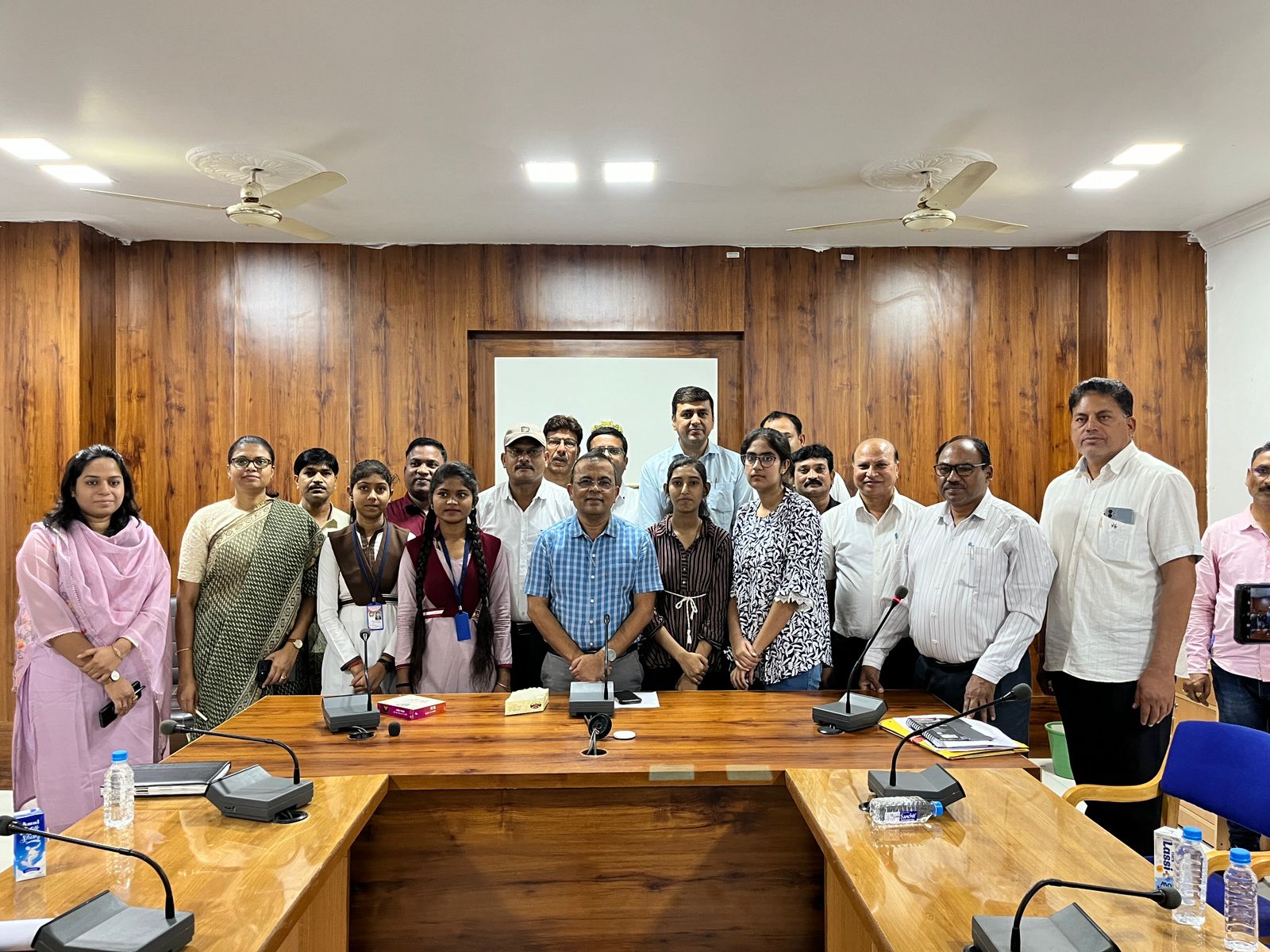 कलेक्टर श्री जनमेजय महोबे टॉपर बच्चों से मिले और उनके उज्जवल भविष्य की बधाई एवं शुभकामनाएं दी
