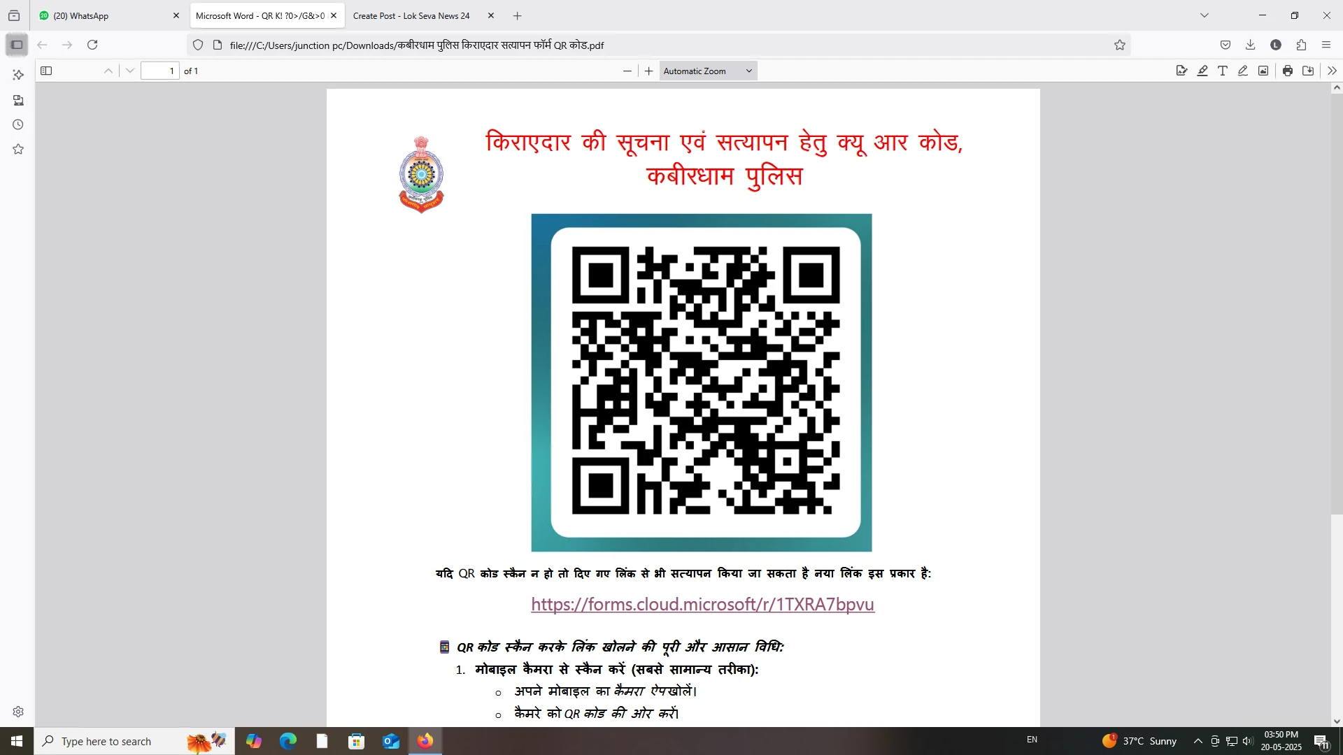 QR कोड स्कैन करके लिंक खोलने की पूरी और आसान विधि: : निवासरत किरायेदारों का सत्यापन पुलिस विभाग के लिए एक महत्वपूर्ण प्रक्रिया है